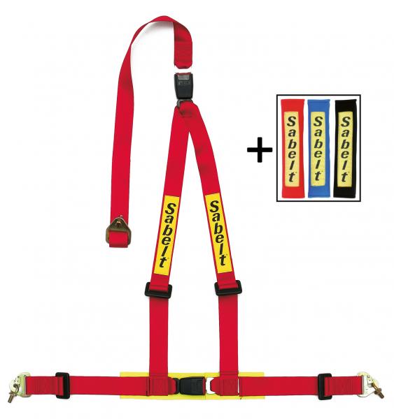 Bezpečnostní pás Sabelt Clubman 3-bodový červený - karabina/očko (E homologace)