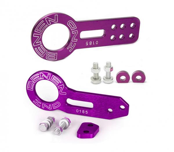 Přední a zadní odtahový hák (odtahové oko) Benen style - fialový. Univerzální. Jedná se o kompletní kit předního a zadního háku.