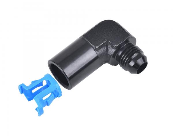 Rychlo spojka koleno 90° na sériový EFI palivový systém D-06 (AN6) na 3/8" - samice (push-on). Závit: 9/16"x18-UNF.